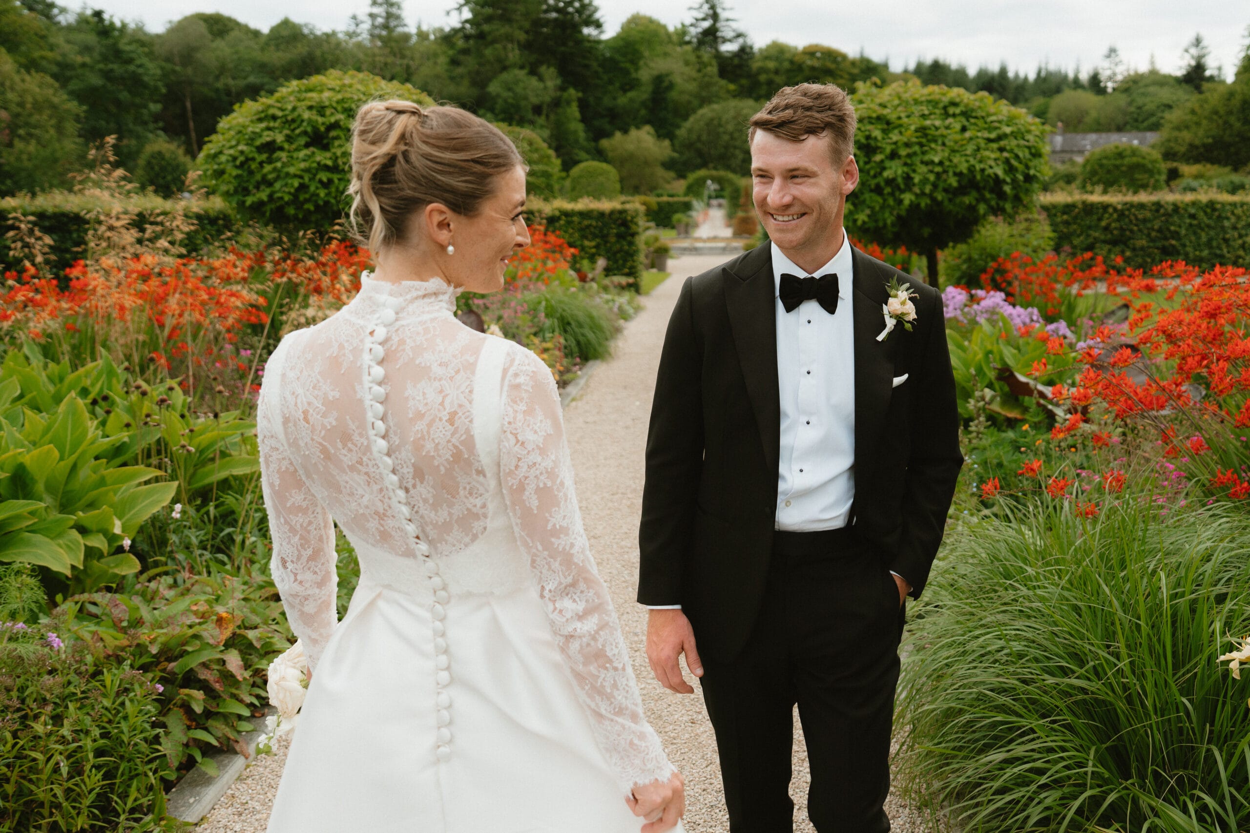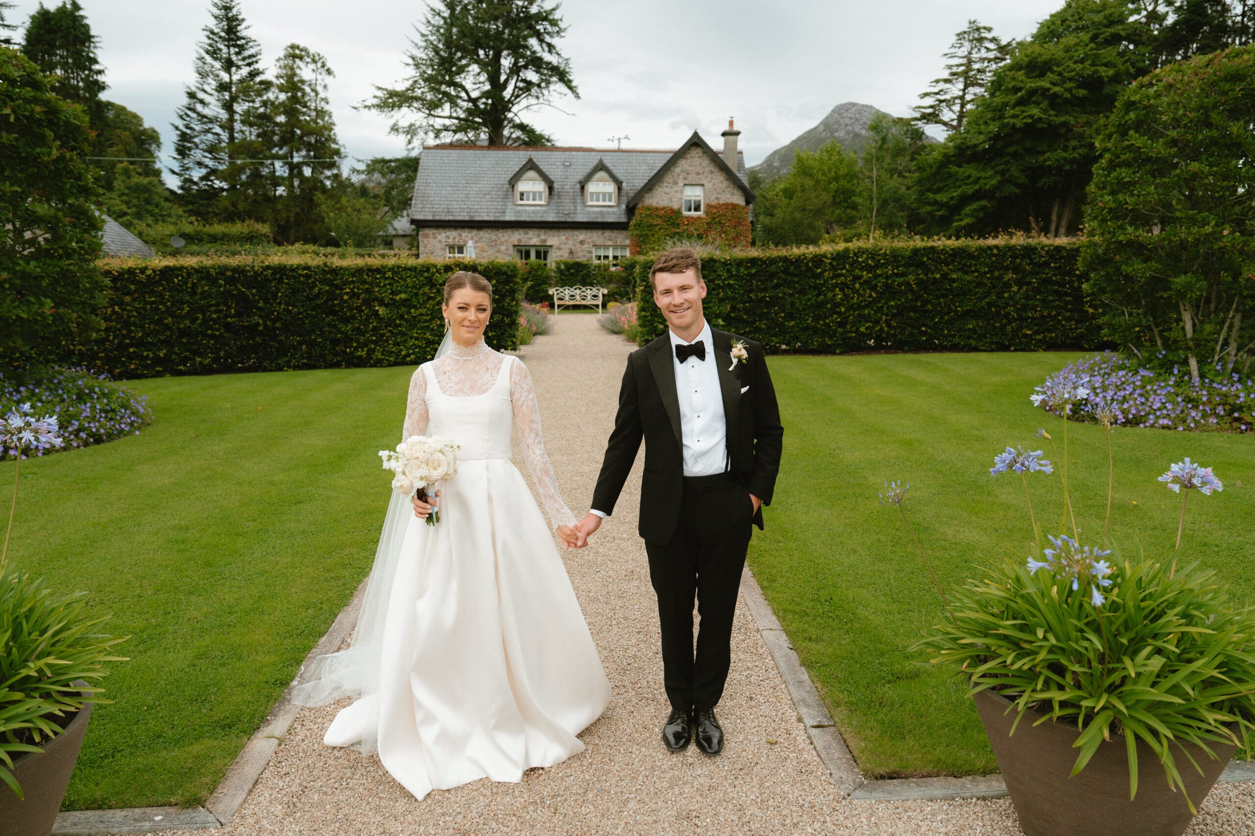 Following the ceremony, we returned to Ballynahinch Castle for family photographs. The walled garden was the perfect setting, structured yet natural, with its ivy-clad walls creating a private backdrop for timeless family portraits.